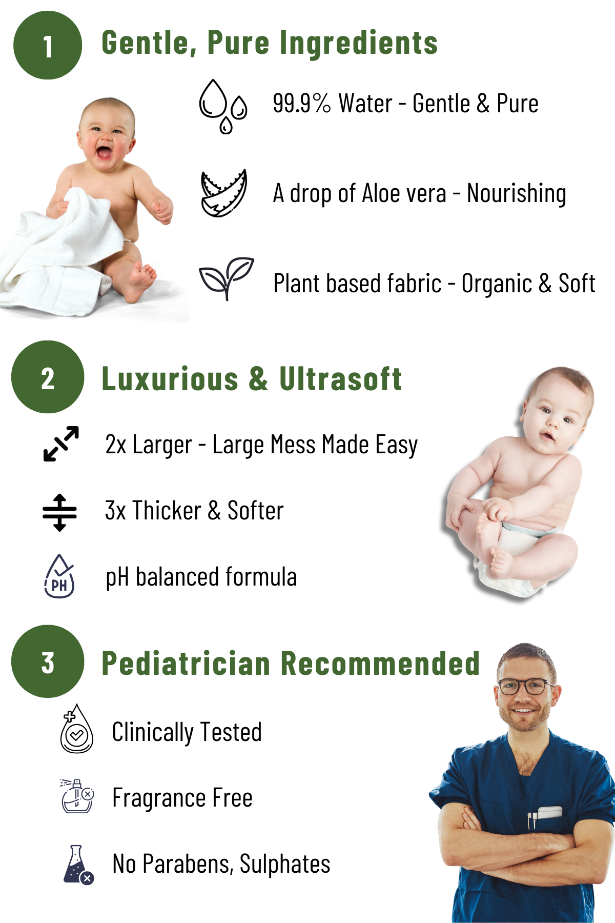 100% Plant-Based: Eco-friendly, biodegradable, baby-safe.